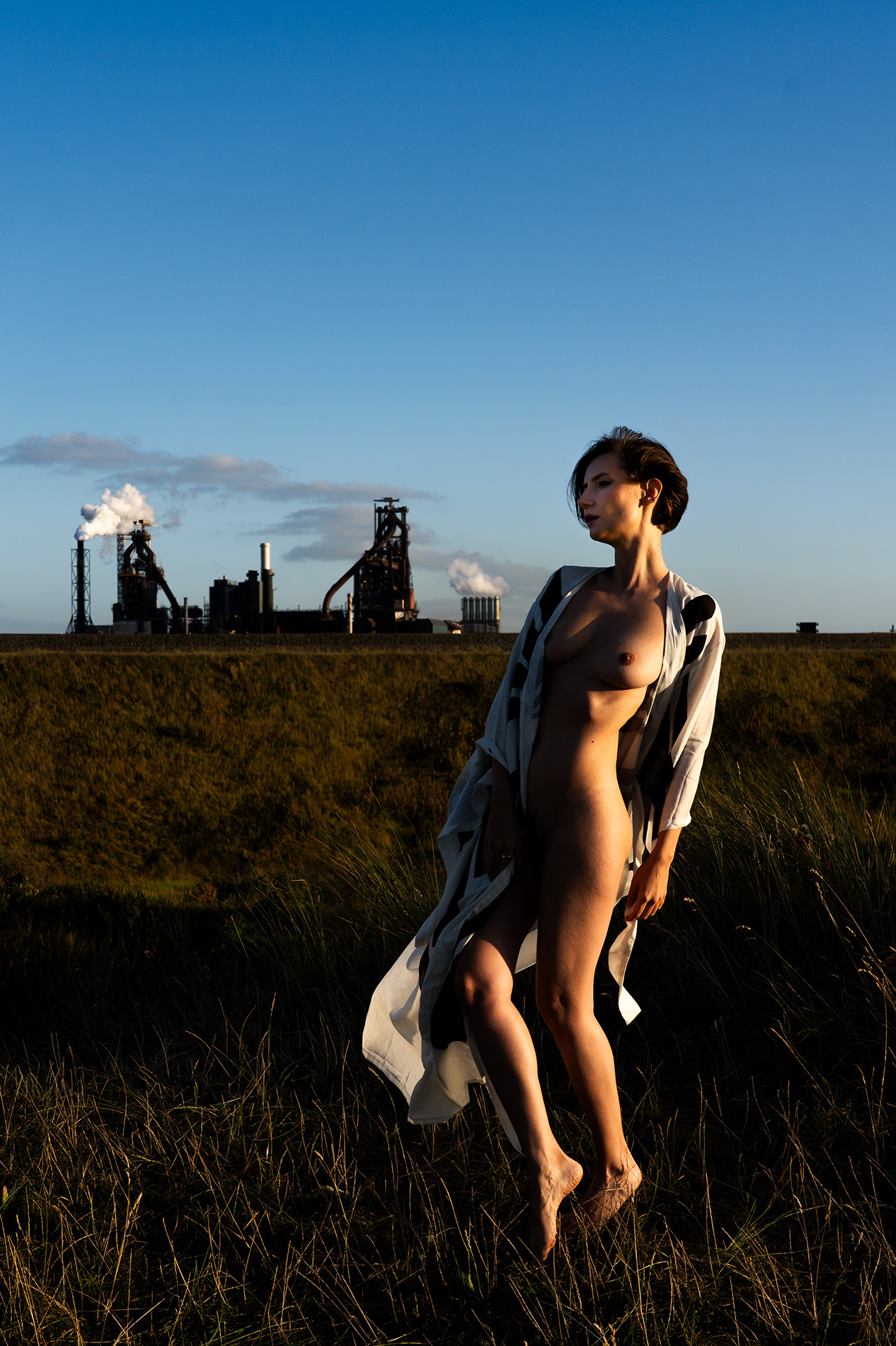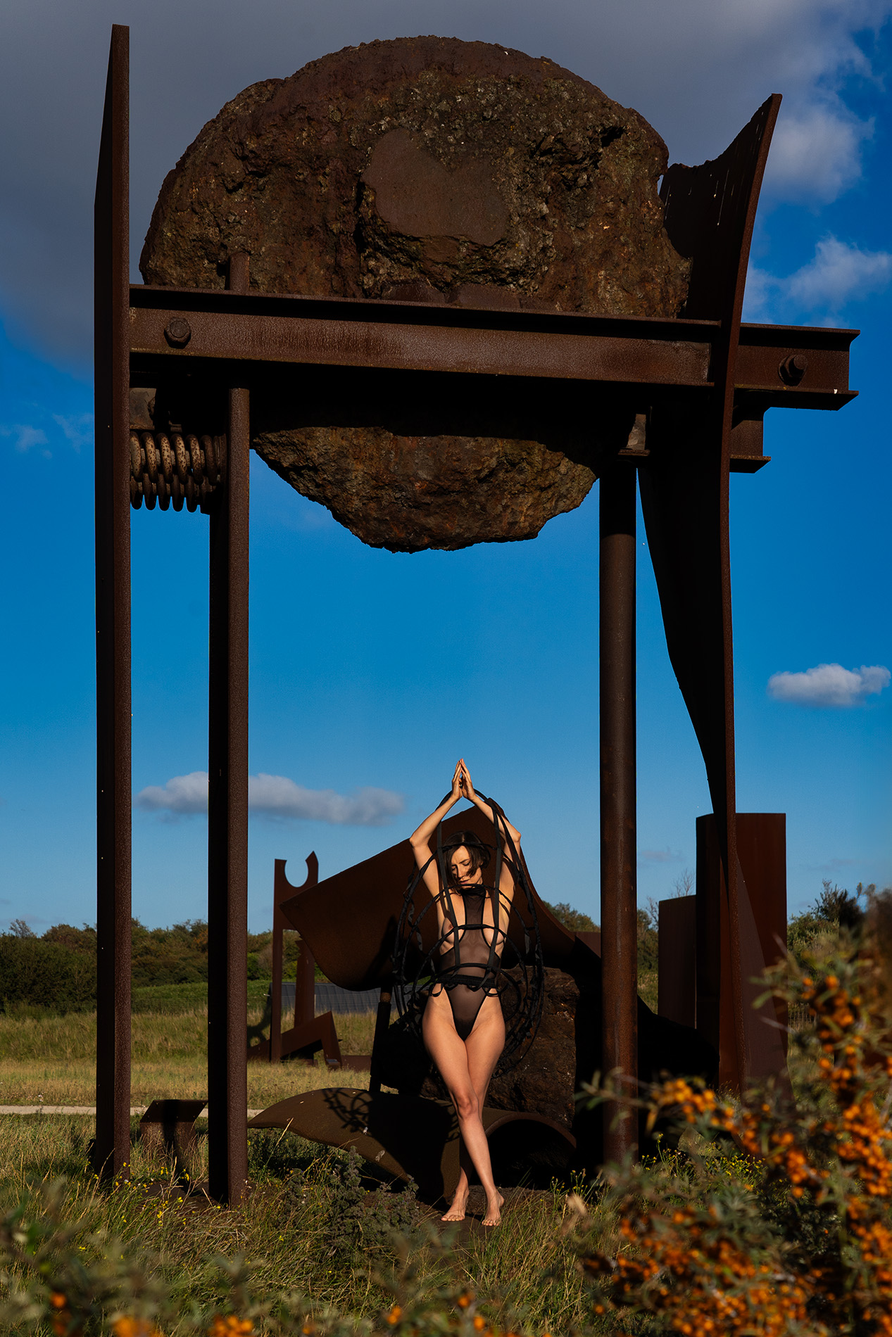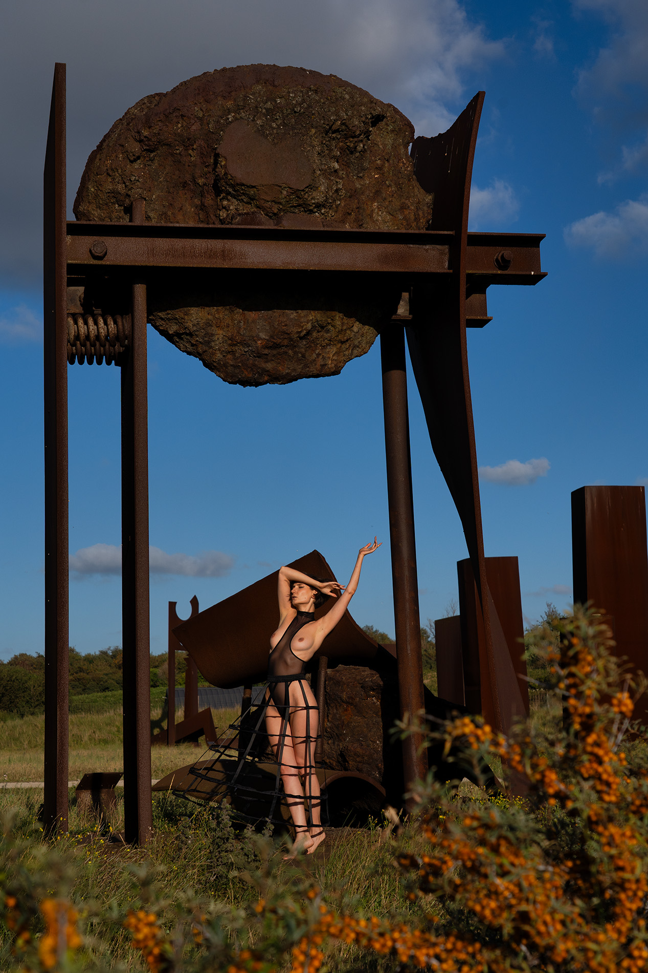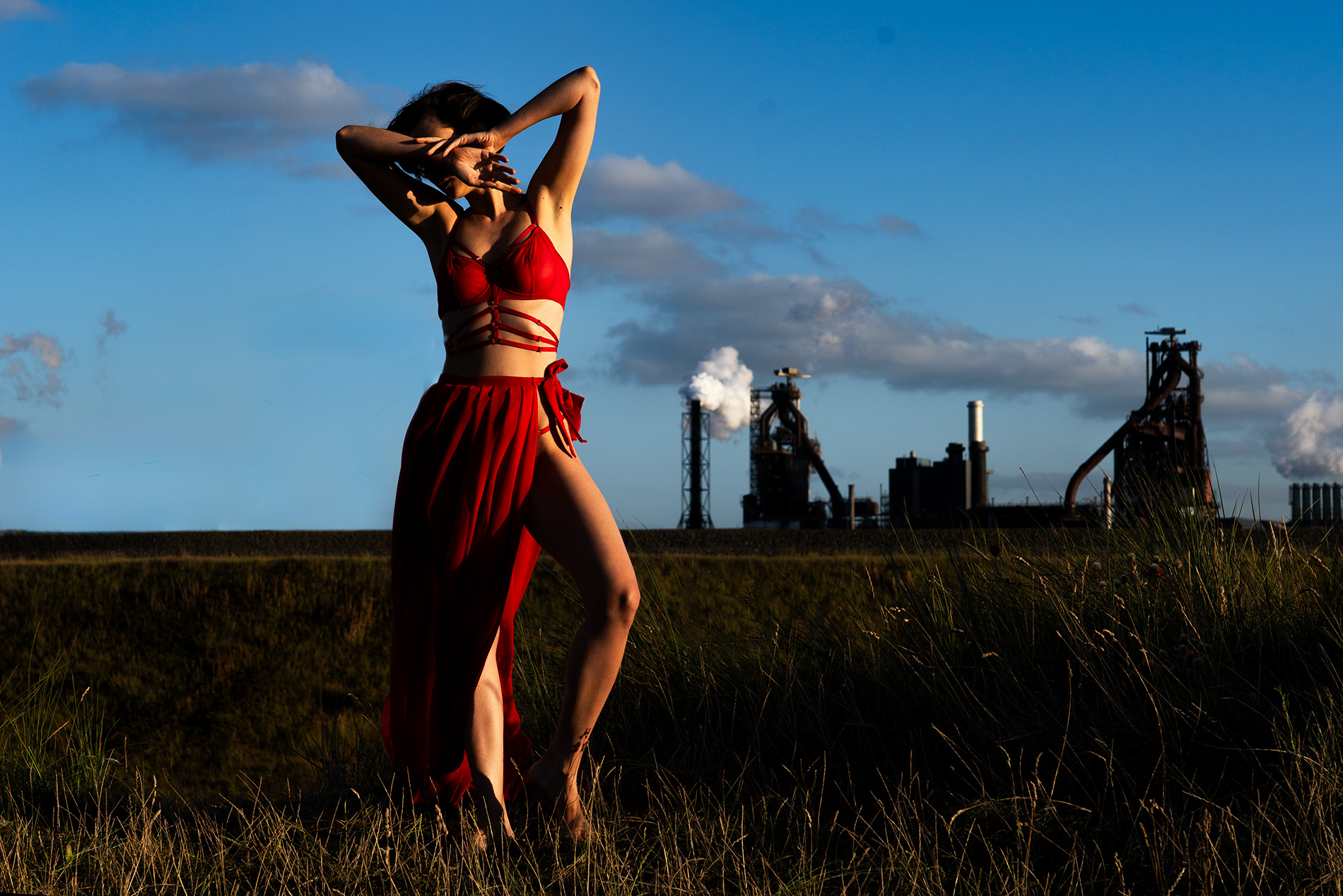 This shoot Christall (@christall4) and I planned months in advance. Location is close to maybe the most polluted spot in the Netherlands. Its an art park close to the steel plant of Tata steel. its located in the dunes, close to the beach and sea. The Park is called :'Zee van Staal", or Sea of steel". It consists of about 15 huge steel constructions, most of Corten Steel.
