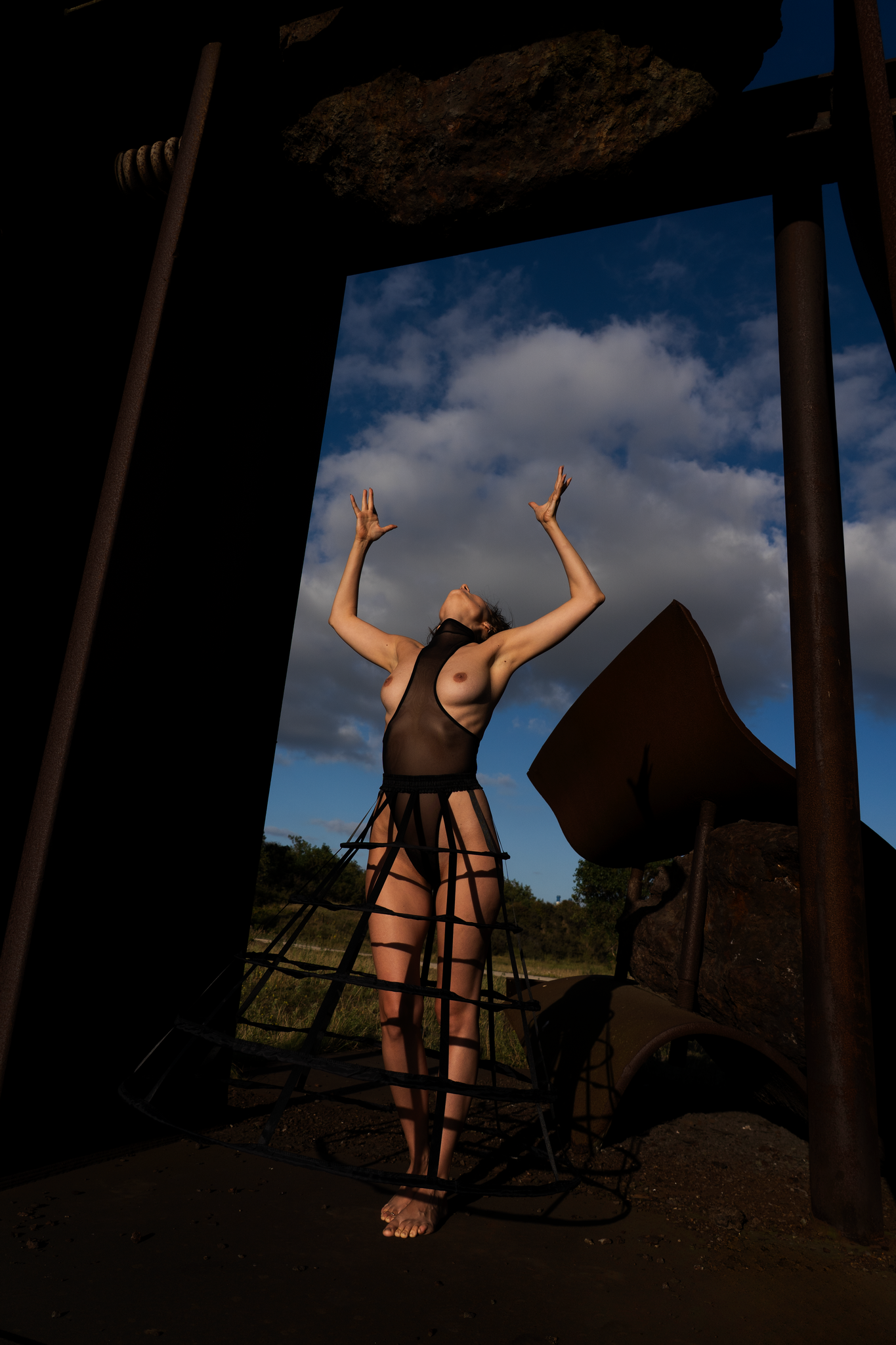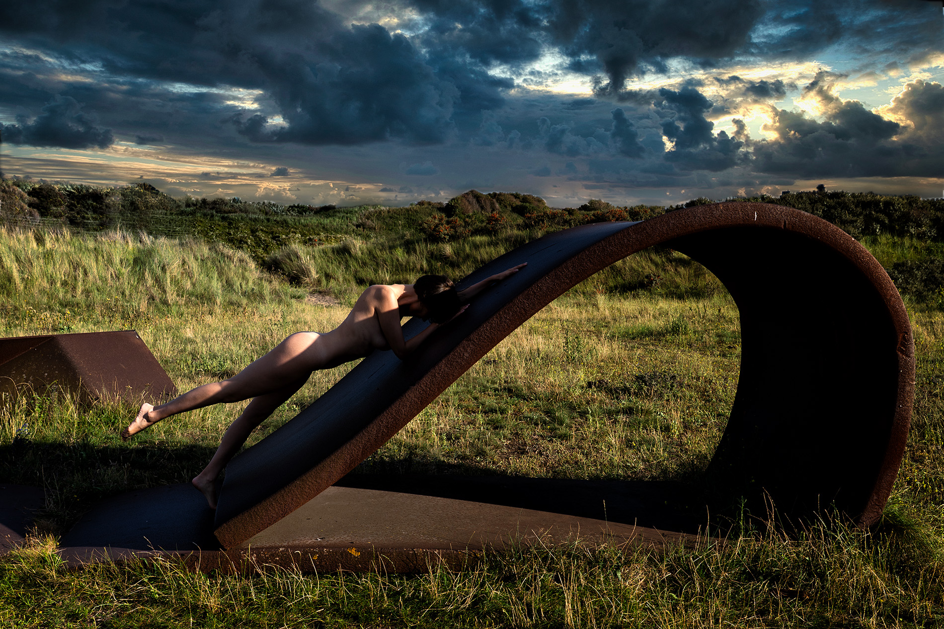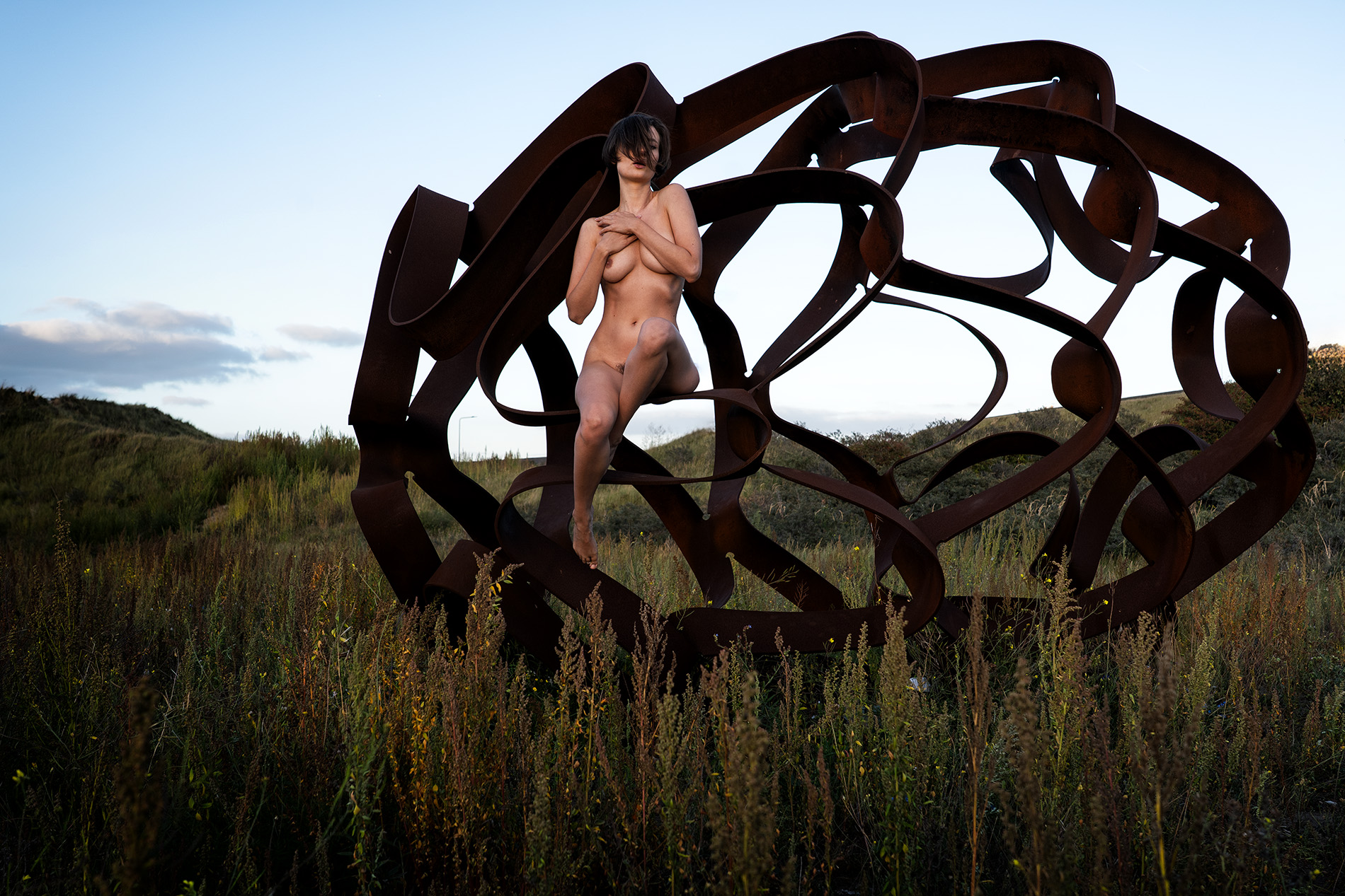 This shoot Christall (@christall4) and I planned months in advance. Location is close to maybe the most polluted spot in the Netherlands. Its an art park close to the steel plant of Tata steel. its located in the dunes, close to the beach and sea. The Park is called :'Zee van Staal", or Sea of steel". It consists of about 15 huge steel constructions, most of Corten Steel.