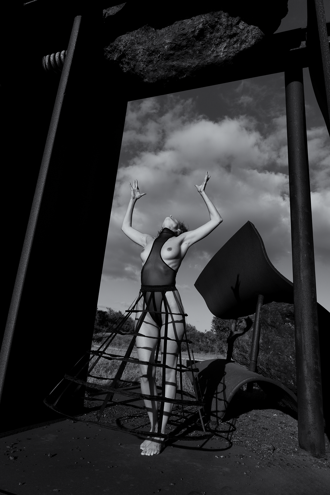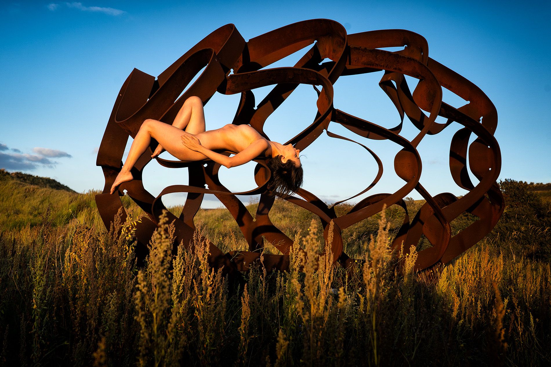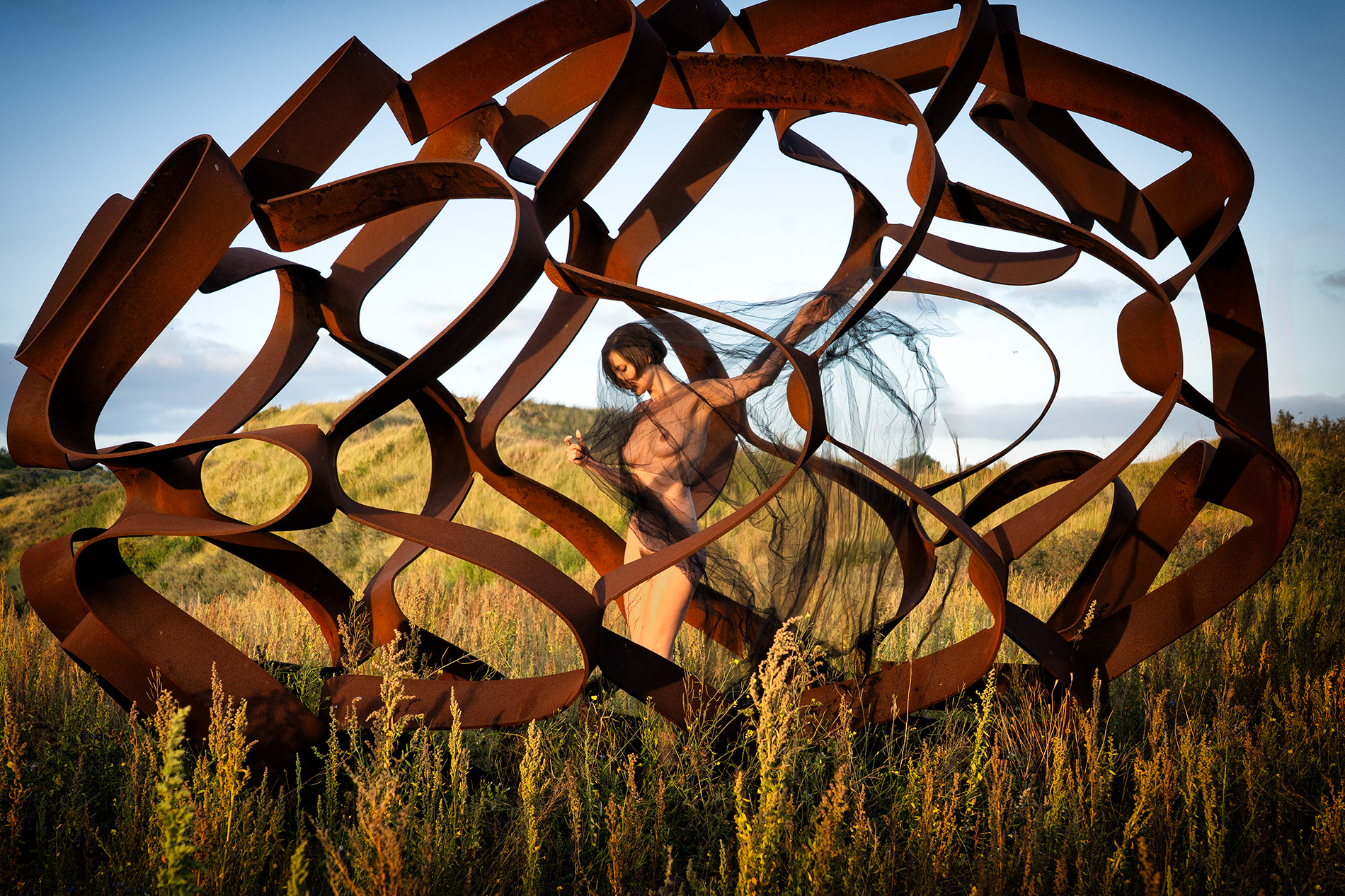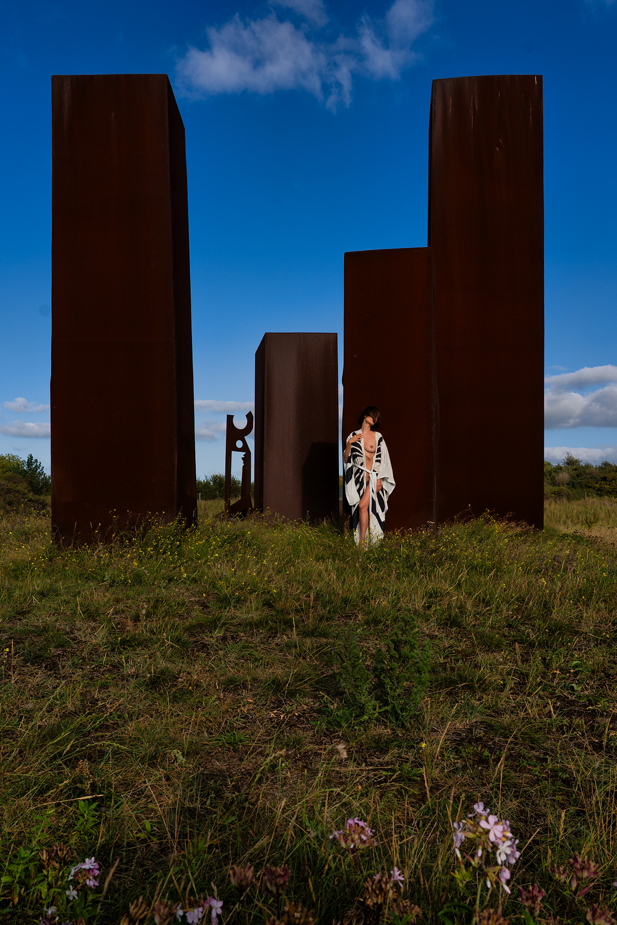 This shoot Christall (@christall4) and I planned months in advance. Location is close to maybe the most polluted spot in the Netherlands. Its an art park close to the steel plant of Tata steel. its located in the dunes, close to the beach and sea. The Park is called :'Zee van Staal", or Sea of steel". It consists of about 15 huge steel constructions, most of Corten Steel.