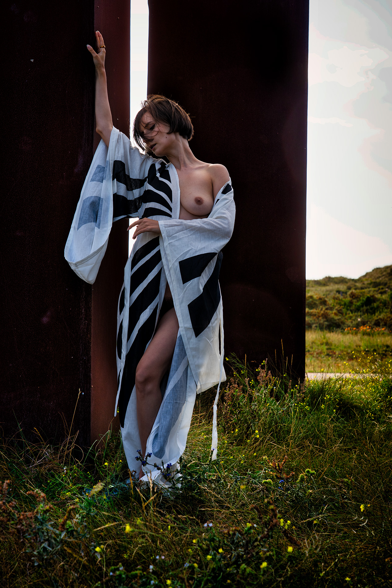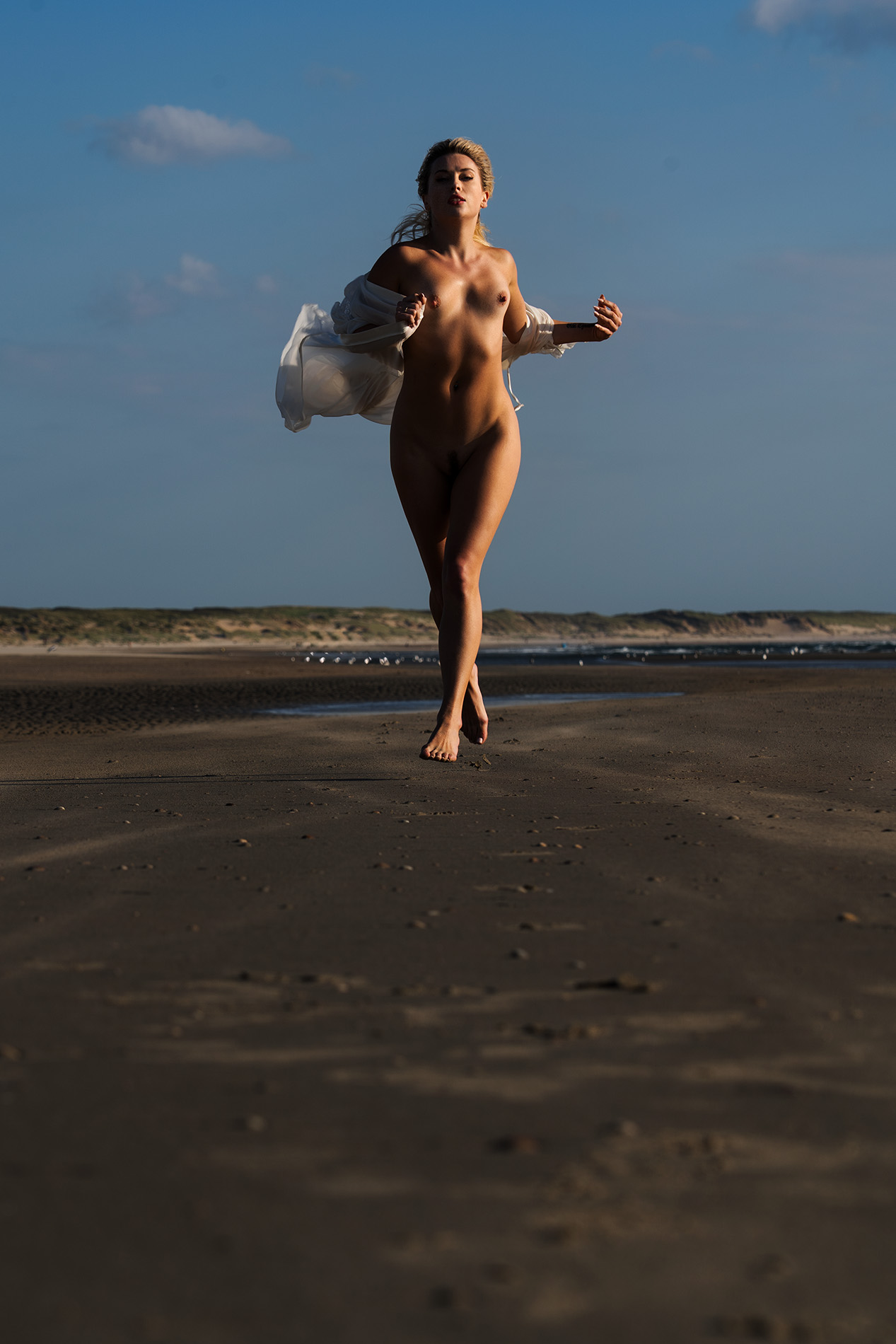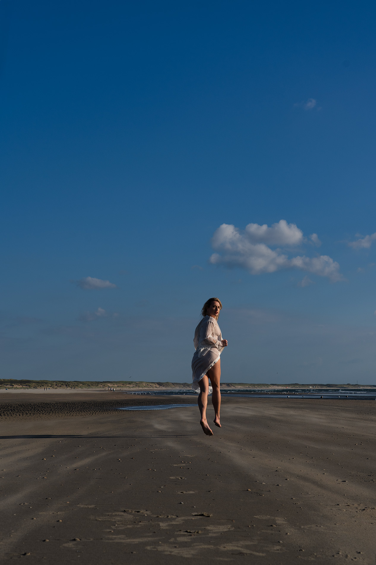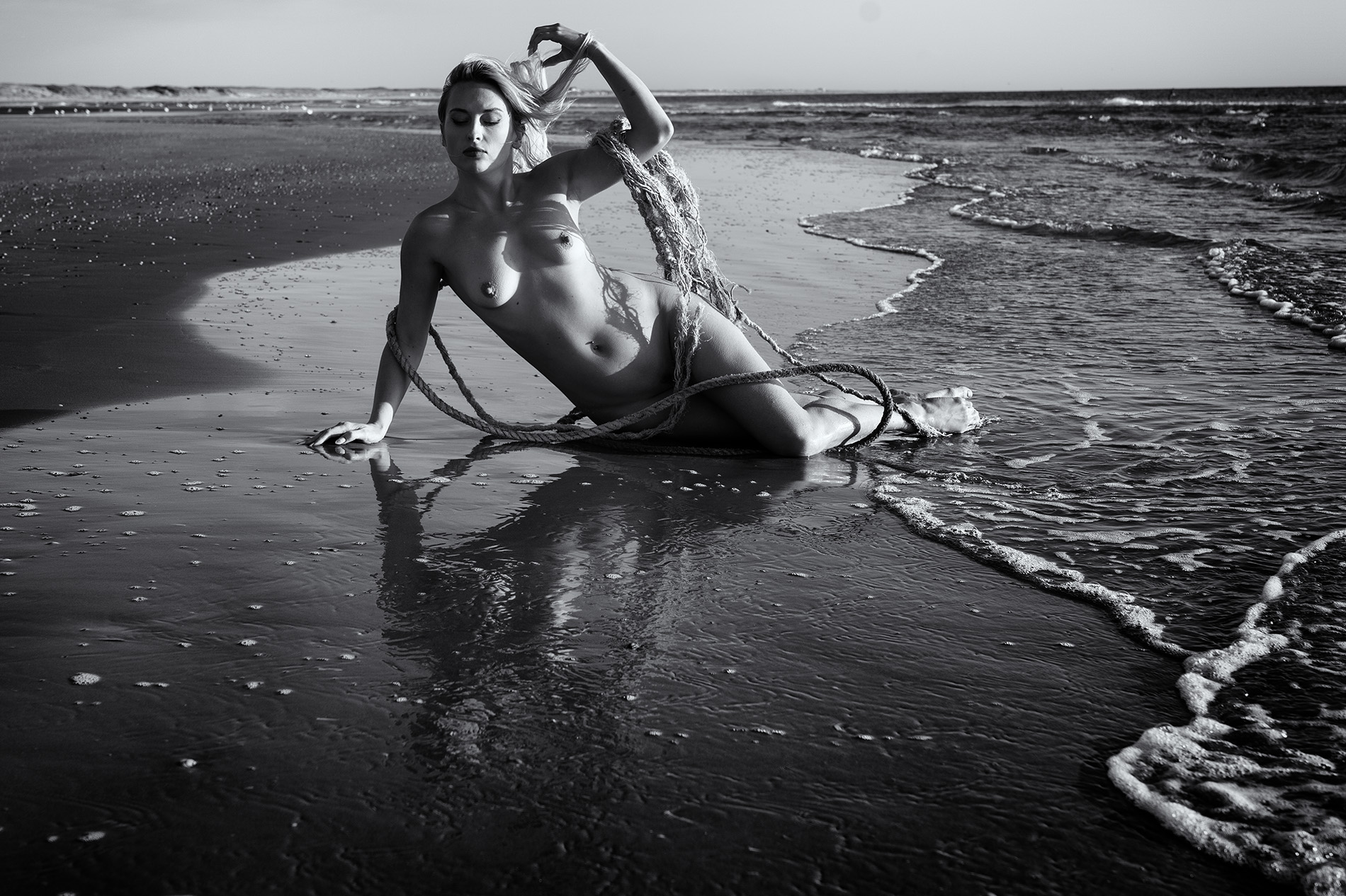 After a couple of years I had the opportunity to shoot with Ira again. She stayed close to the dunes, beach, sea, so a location choice wasn't difficult. We went for a shoot towards the golden hour to 2 special spots. Ira is not only beautiful, but also very versatile, brave and has a lot of enthusiasm. We shot in a kind of pier, the beach and in the waves of the rather cold sea. slowly the sun disappeared after the horizon to give an extra dramatic accent to the images.