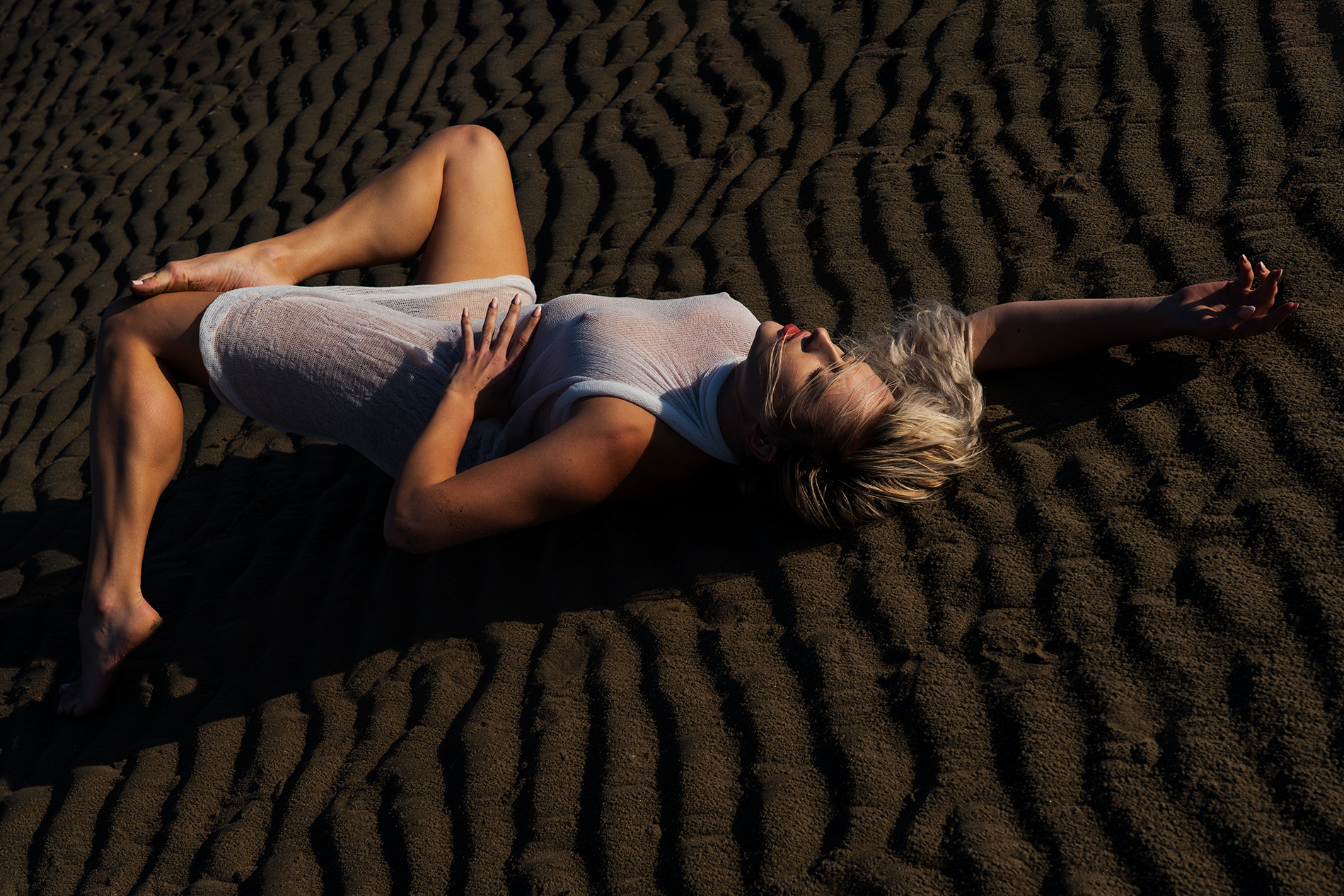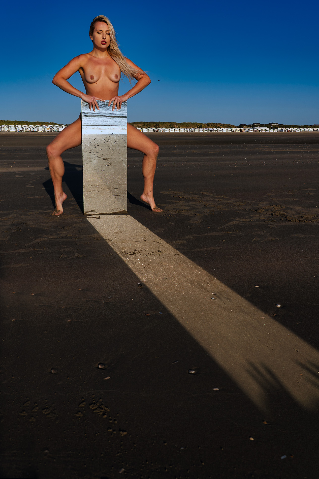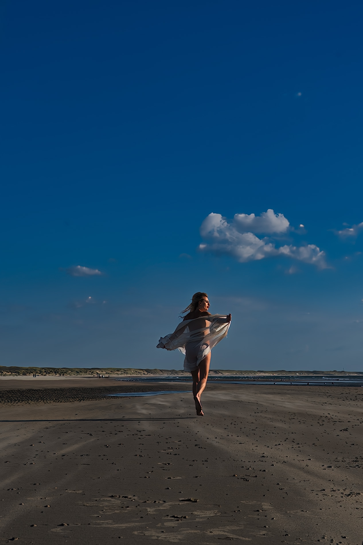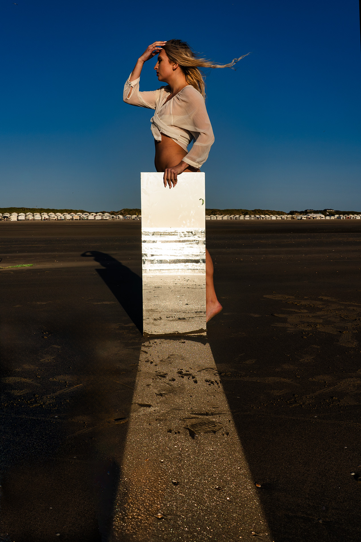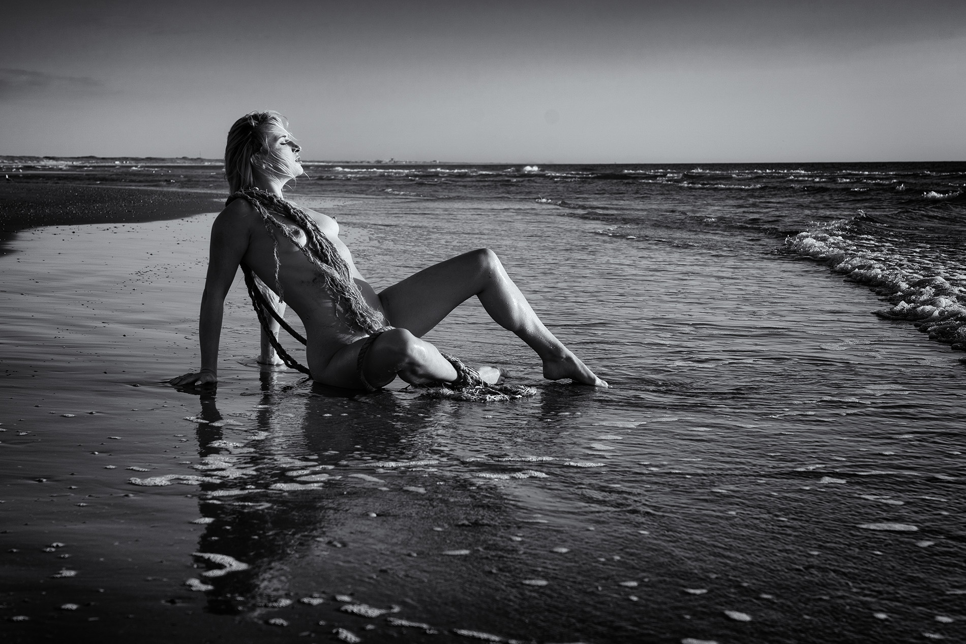 After a couple of years I had the opportunity to shoot with Ira again. She stayed close to the dunes, beach, sea, so a location choice wasn't difficult. We went for a shoot towards the golden hour to 2 special spots. Ira is not only beautiful, but also very versatile, brave and has a lot of enthusiasm. We shot in a kind of pier, the beach and in the waves of the rather cold sea. slowly the sun disappeared after the horizon to give an extra dramatic accent to the images.