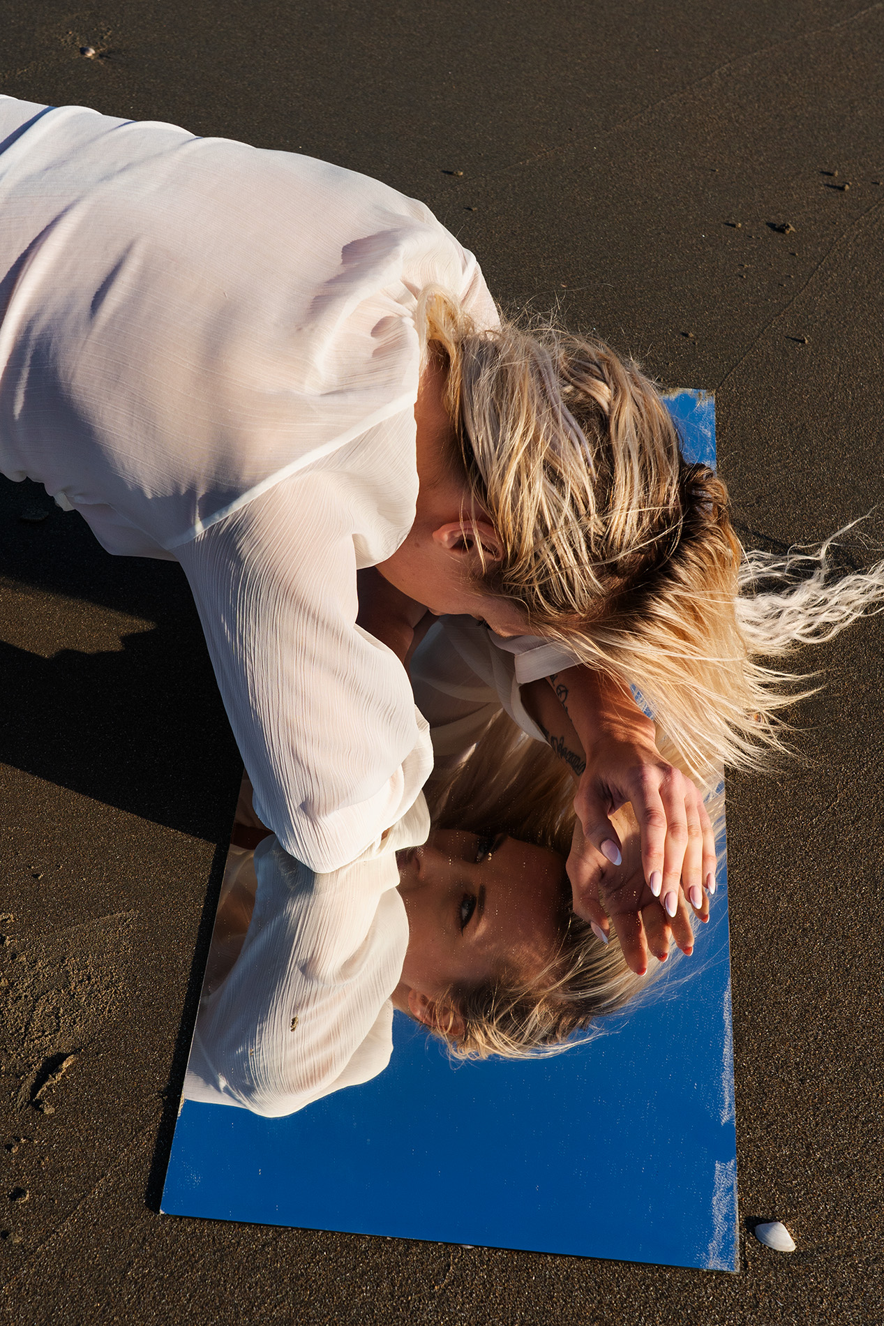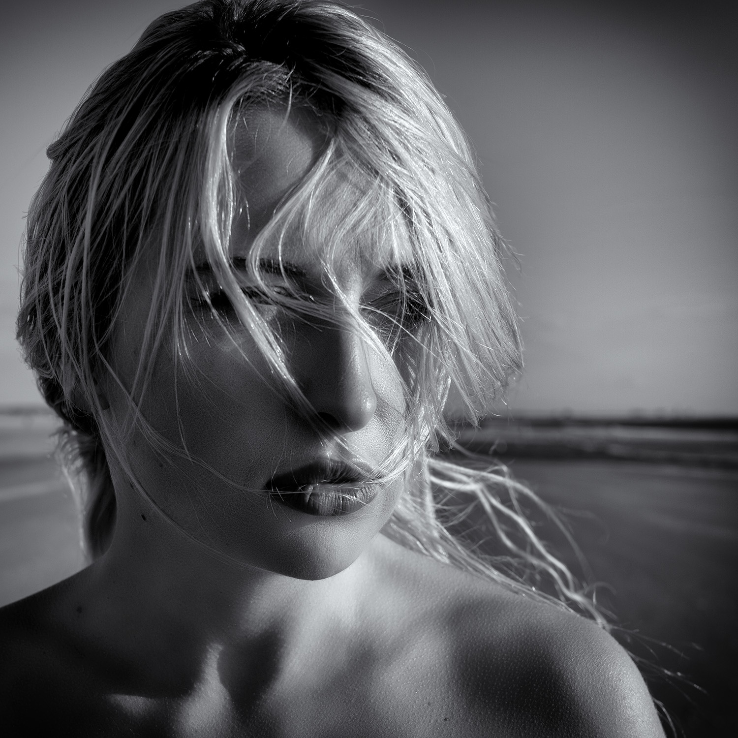 Aurora and I met several times before: indoor, outdoor, remote, make and female duo shoots. This time at the beach around golden hour. we know each other that well that not much direction is needed. Aurora is a pro anyway. We were lucky with the bright sun, made a lot of typical beach shots and some contrasty work in color and BnW. have a look.