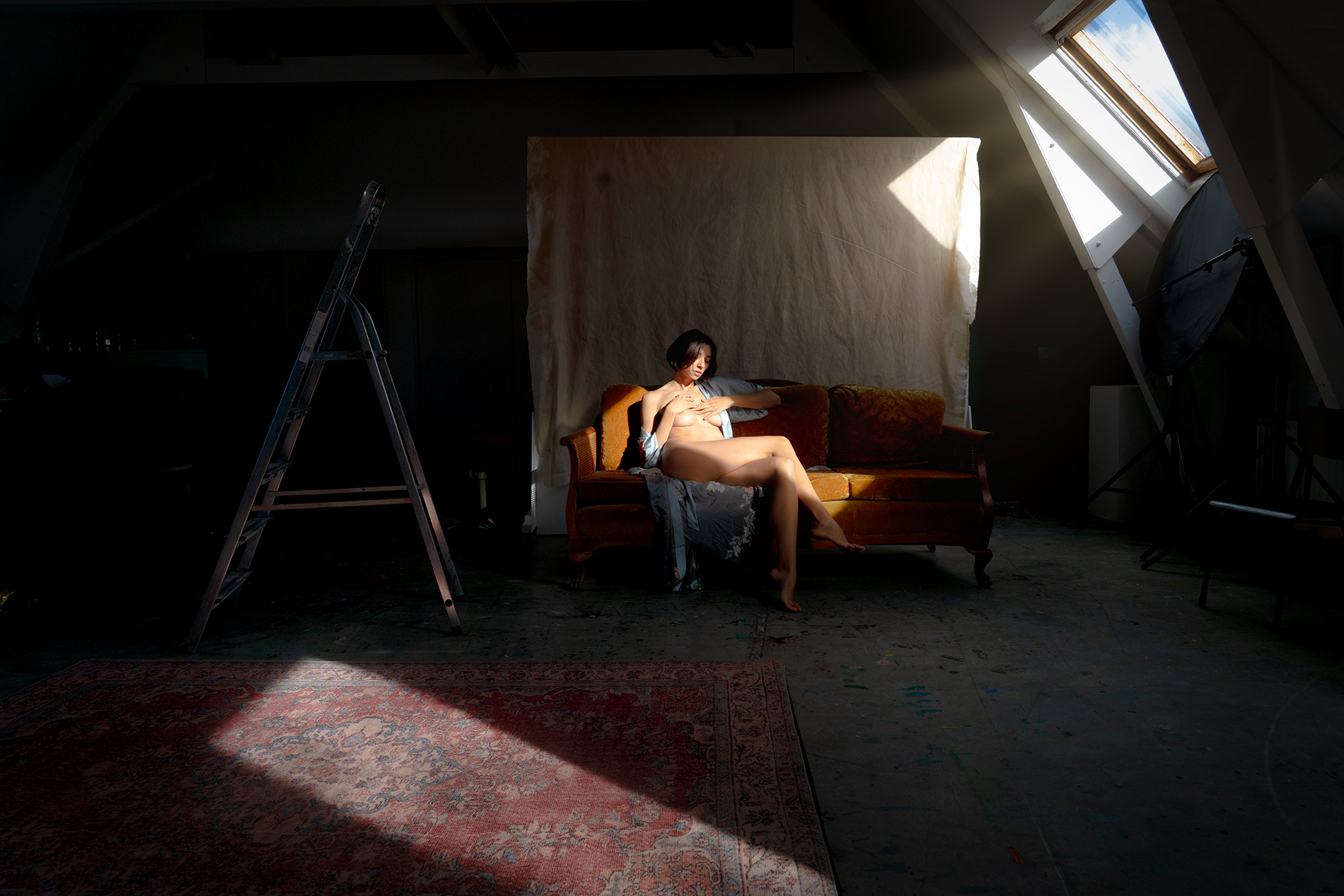 When I saw images of Olga , I was totally in love with her posing style. we organised a remote shoot, assisted by Yuri Brut. Sometimes you dont need many words to create an atmosphere of trust. Olga went through my ideas in a flow. Simple ideas, beautiful , elegant poses gave wonderful results. The location/ studio with beautiful walls, great light and props created a wonderful environment. You can imagine I was very happy after this remote shoot.