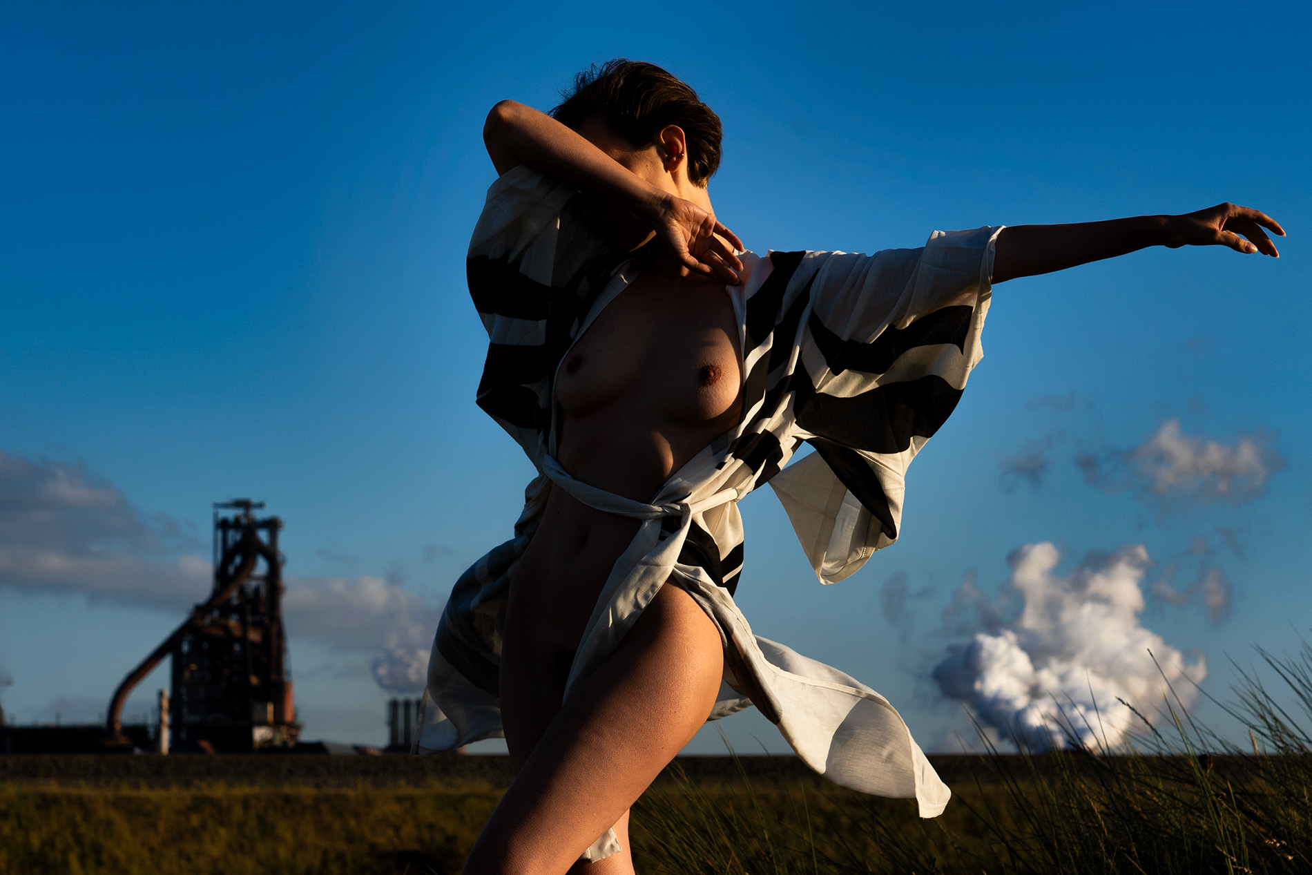 Here we made , in my opinion, a wonderful shoot. We worked in a flow, models did there poses, we shared ideas, I gave ample directions. You see that the 2 models are not only very experienced, they felt comfortable and danced through the raw surroundings.